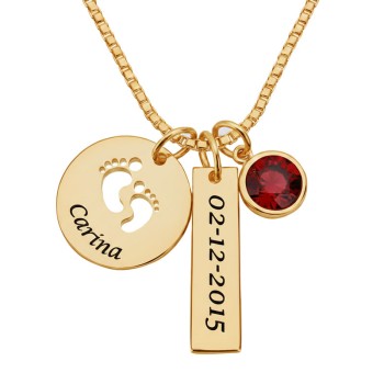 750er vergoldete Silber Halskette mit graviertem Namensanhänger
