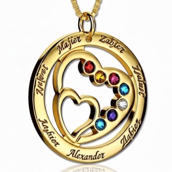Herz in Herz-Halskette mit Gravur und Geburtssteinen