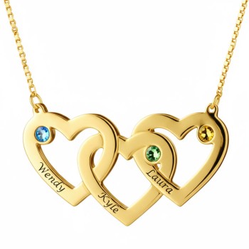 Herz in Herz-Halskette mit Gravur und Geburtssteinen