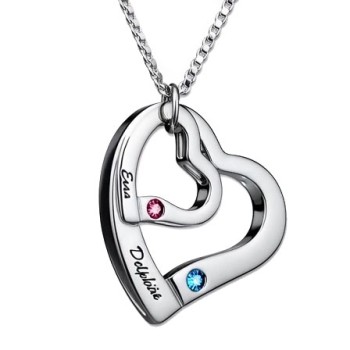 Geburtssteinkette mit Gravur und zwei Herzen für Mütter
